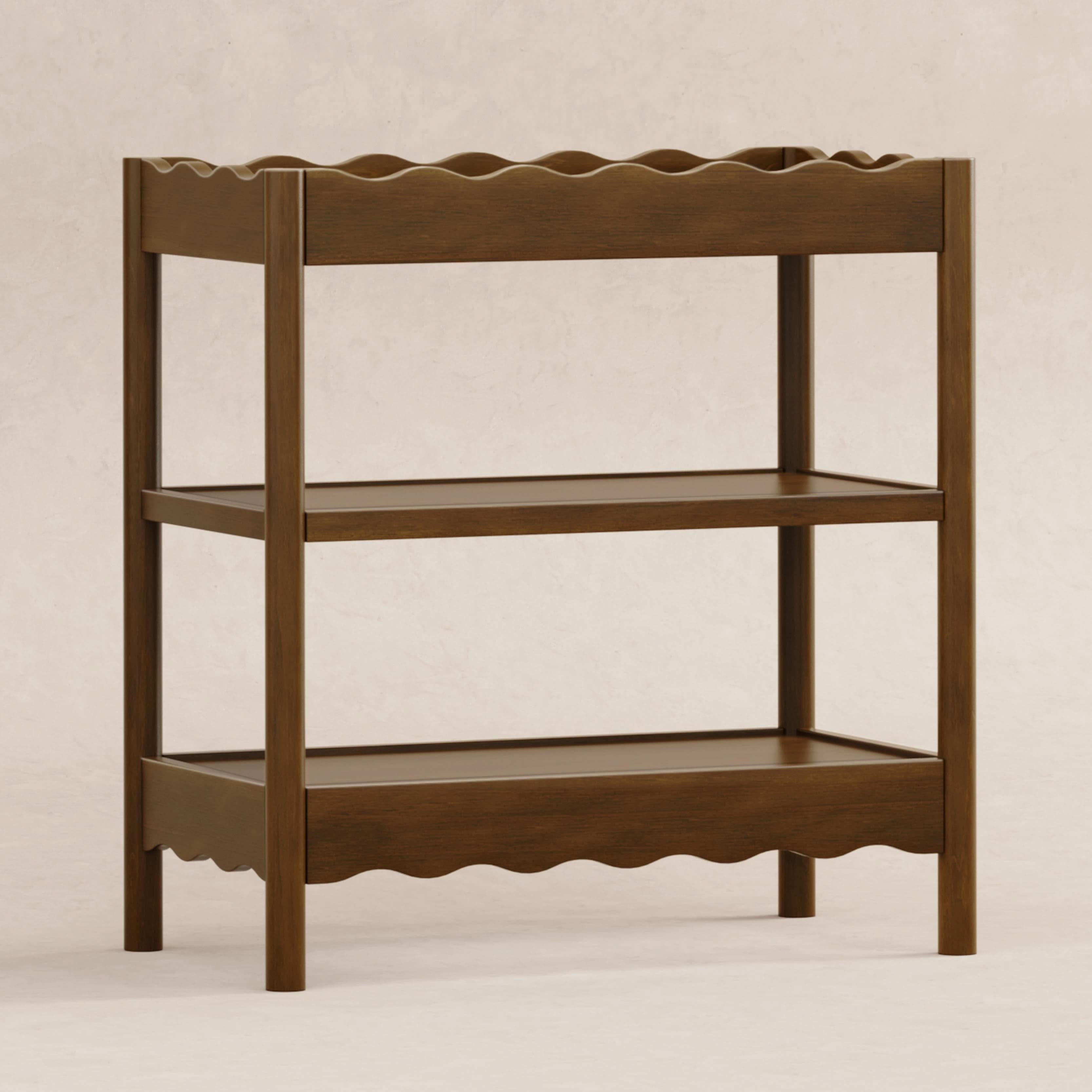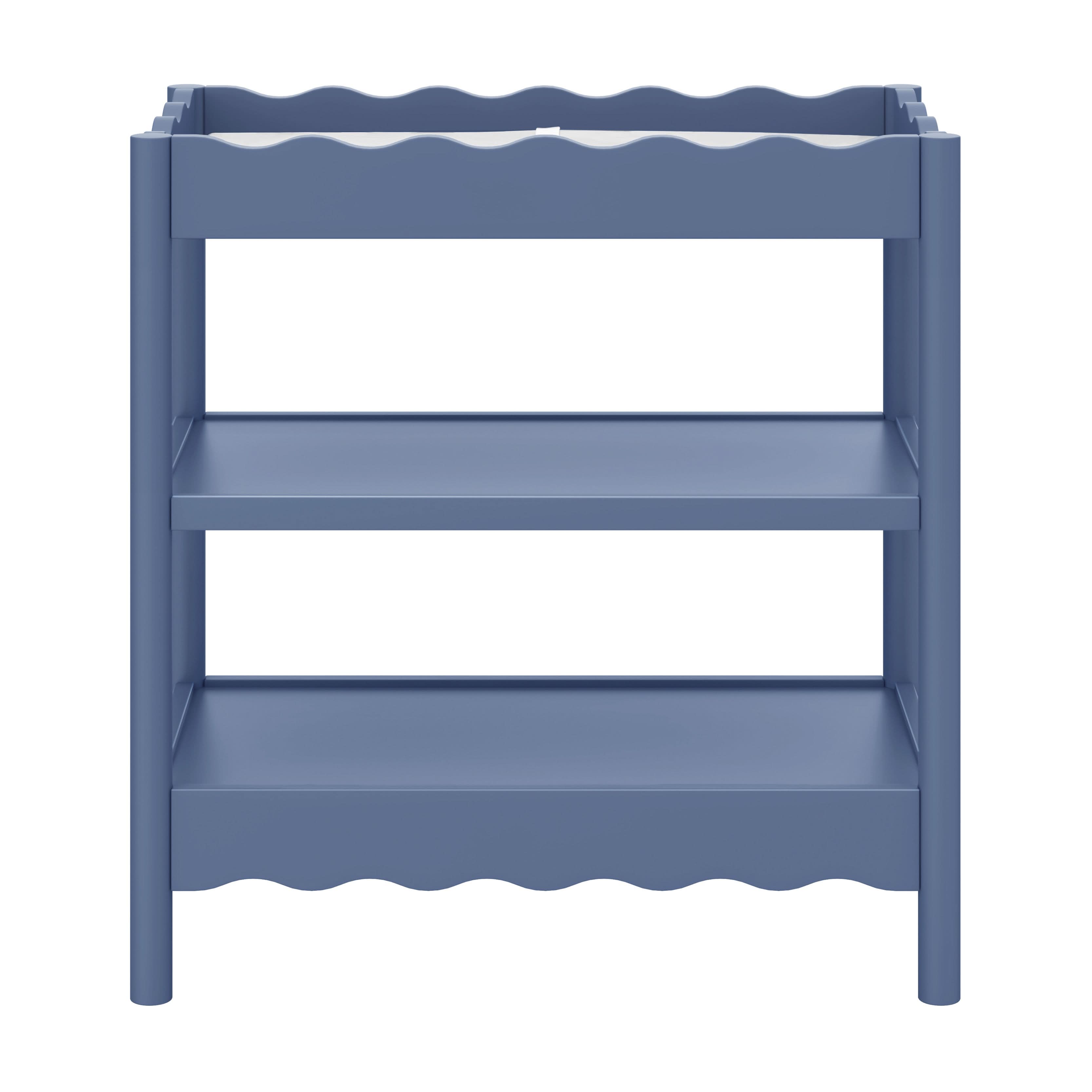 With rounded posts and wave-like edges, the Swell Changing Table has a modern appeal with an ocean-inspired design that pairs perfectly with your Swell Crib. It features two spacious, open shelves to keep all your baby’s diaper changing needs within easy reach for convenient changings.
