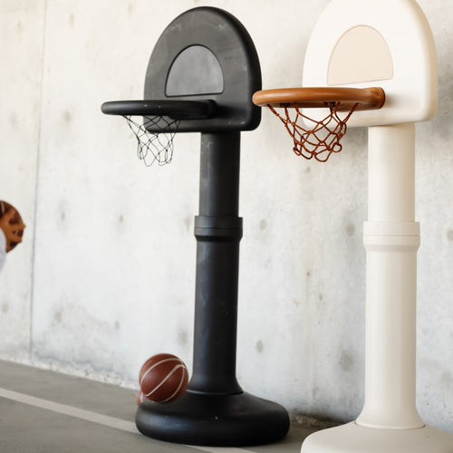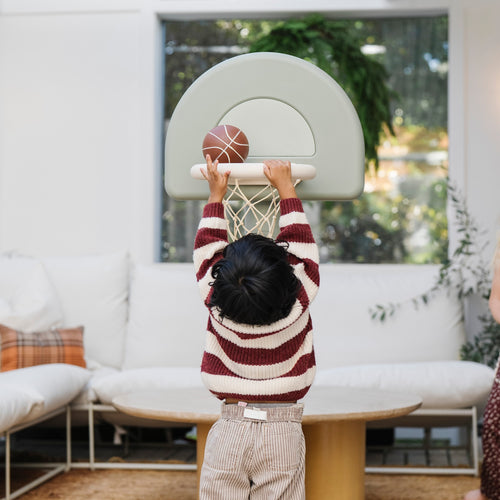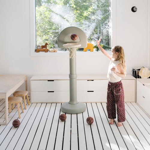 Meet the elevated basketball hoop that’s as good-looking as it is game-ready. Made of durable plastic, it’s wipeable, portable, and has an adjustable height to grow with your child. Because every playroom deserves a slam dunk.