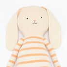 Alfalfa the bunny is truly adorable and perfect to cuddle and play with. Made from knitted organic cotton with floppy ears, sweet stitched features, and a cheeky little pompom tail.