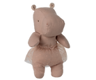 Safari friends are made in the softest fabric and come in great colors. They can sit by themselves as they have beans in their bottom. They are just waiting for you to come and hug them. This small hippo is wearing a beautiful ballerina skirt.