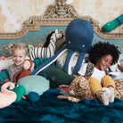Cosmo octopus is a big and beautiful soft toy, expertly crafted from organic knitted cotton. The perfect gift for children who love sea creatures. They will love to play with his dangly arms and give him a cuddle. The top of his body and arms are a brilliant blue with a shimmering metallic thread, and the underside is a cream color.