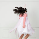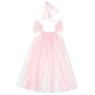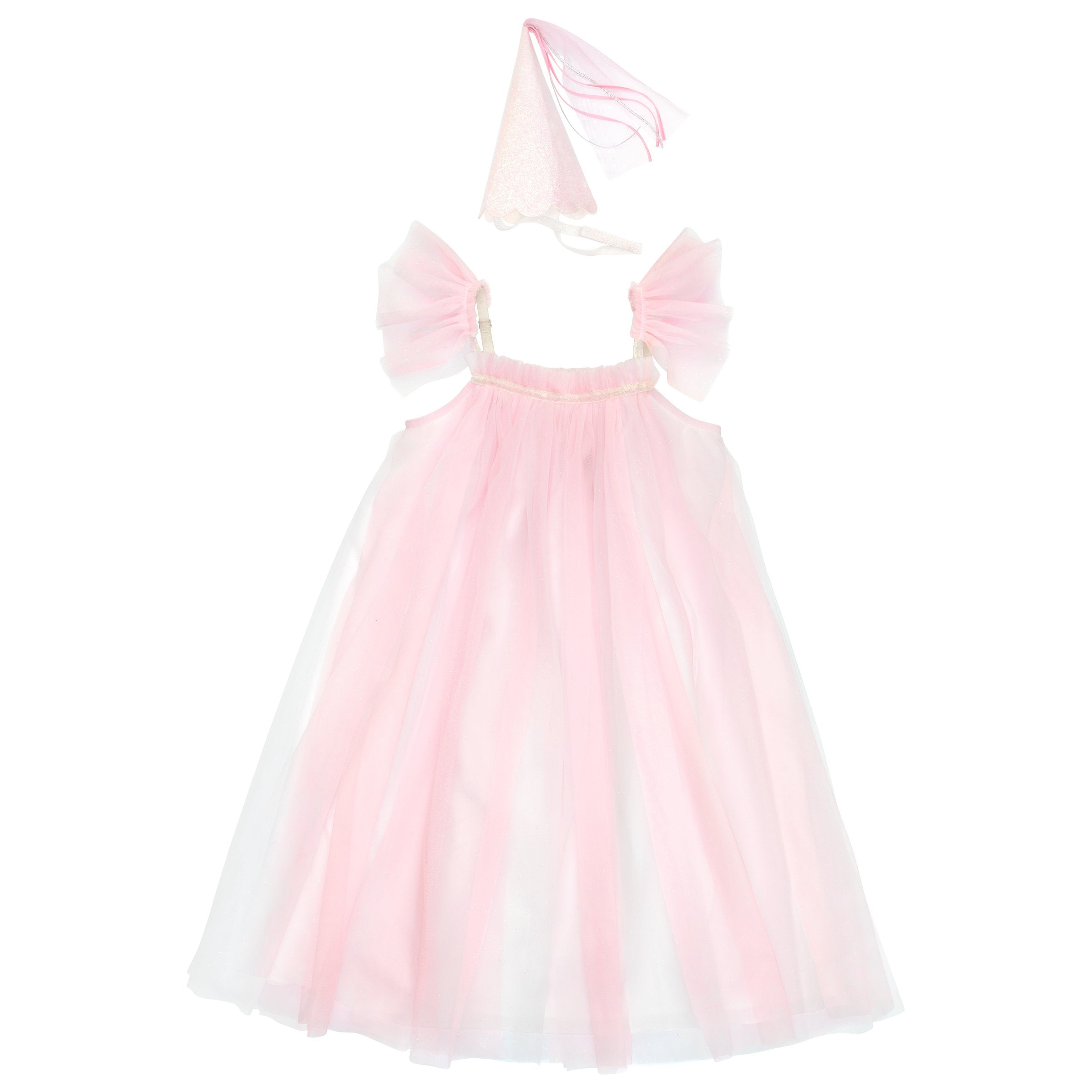 This beautiful magical princess dress up outfit contains a gorgeous tulle dress and hat. The dress is beautifully crafted with four tiers of tulle ruffles and has iridescent sequin elastic detail. The pretty princess hat is glittery pink with tassels.