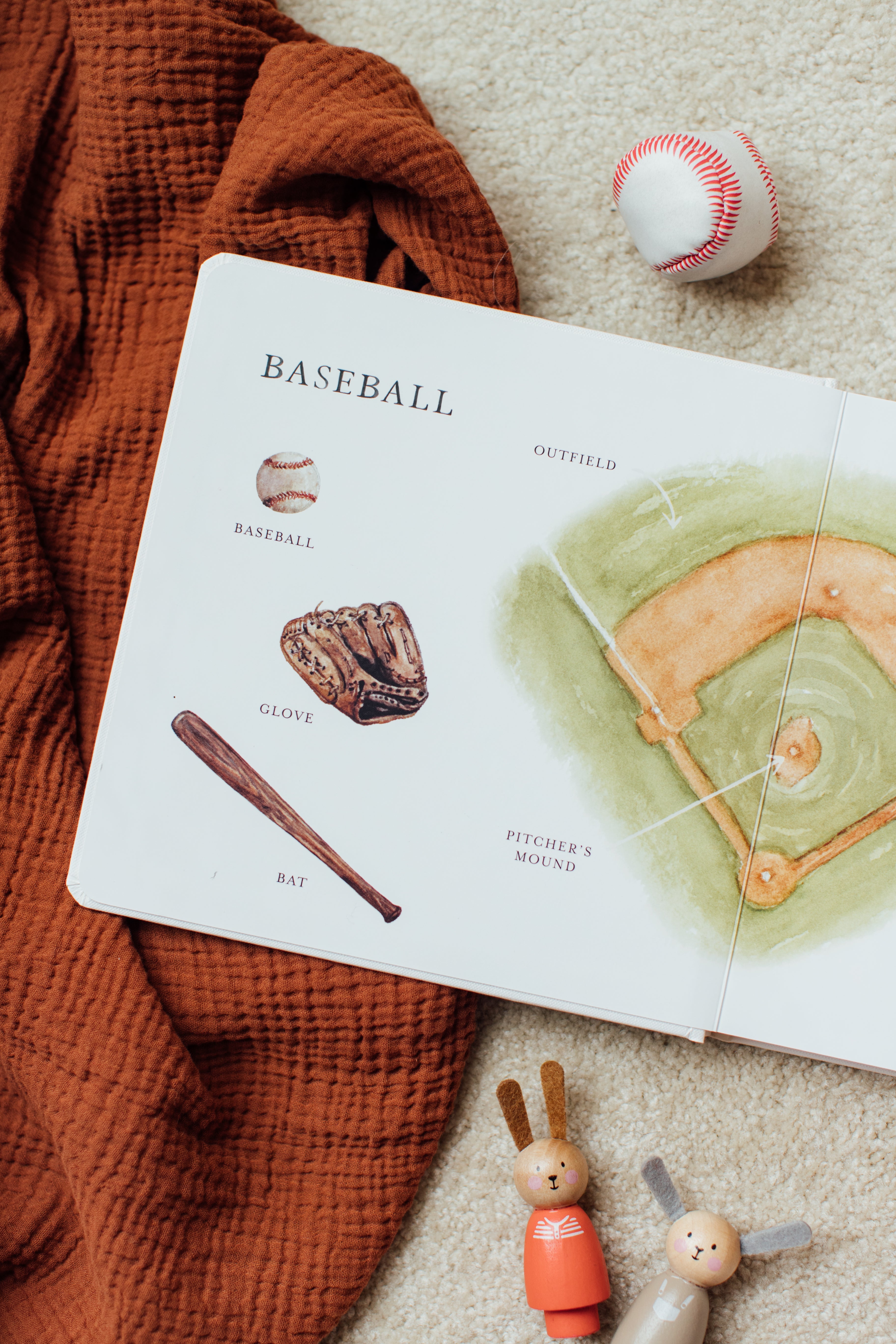 Designed by a professional watercolor artist and licensed speech therapist, Our Big Book of Sports includes charming watercolor illustrations and foundational words that will help you build your child's vocabulary. The durable materials and small book size also make them perfect for your baby's little hands.