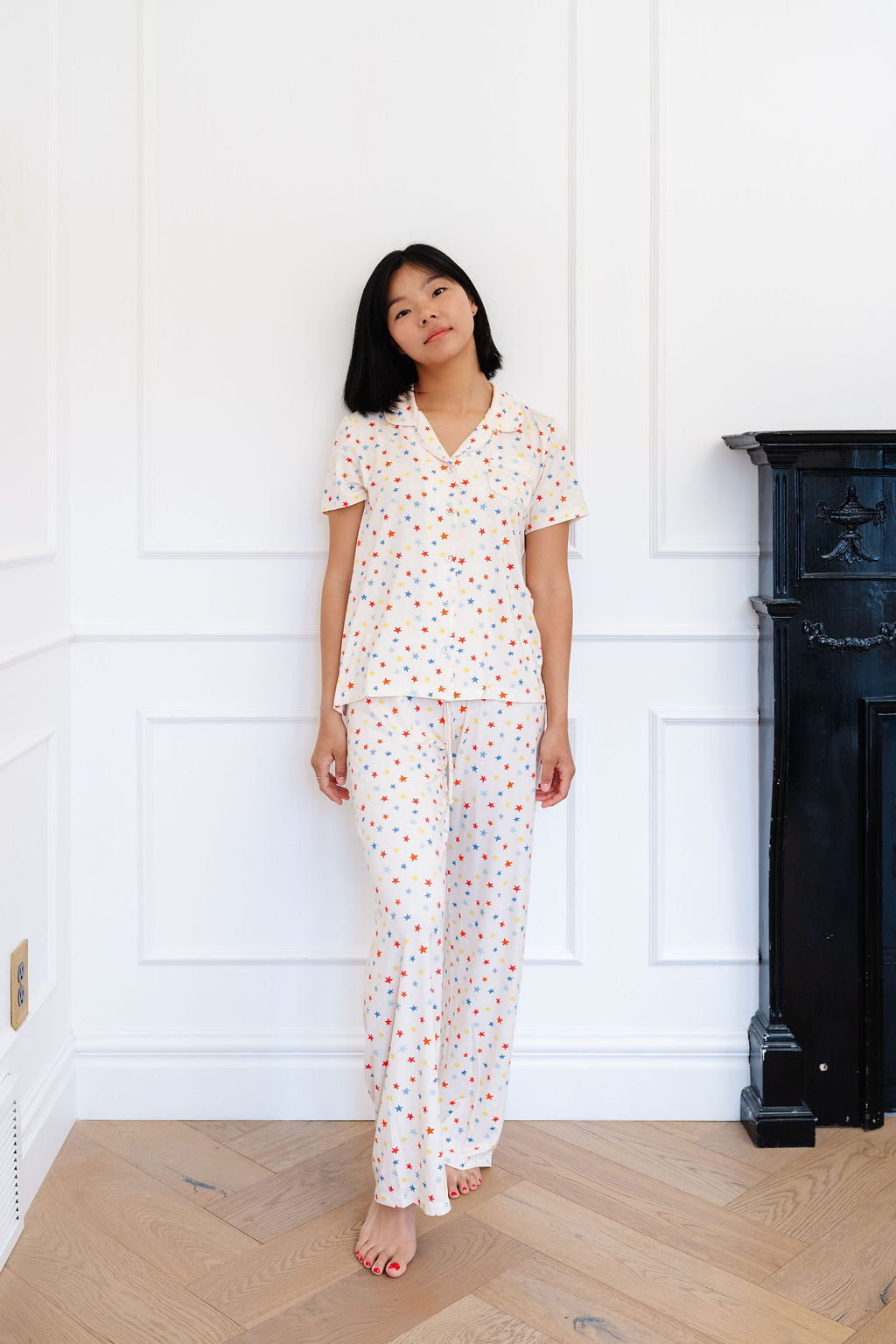 Stars: Red, white, blue, and soft gold stars sprinkled across a creamy backdrop, festive enough for all your 4th of July celebrations, yet subtle enough to wear all summer long.