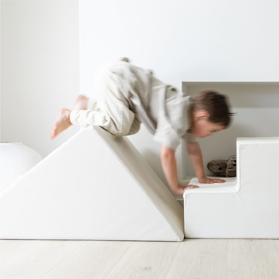 Seesaw, swing, stomp + slide— inside. Your new foul-weather, get-the-wiggles-out friend.