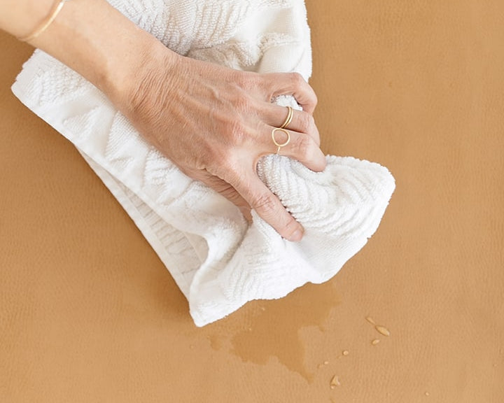 A generously padded mat designed for soft landings, active play, and real life — finished in our signature wipeable faux leather.