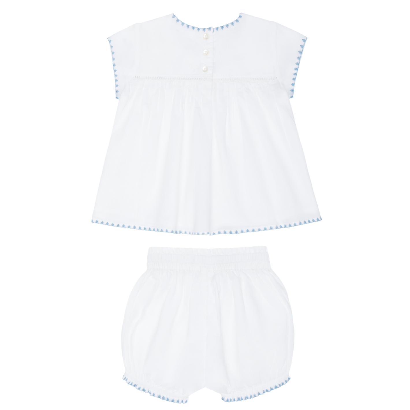 baby girls white embroidered top and bloomer set