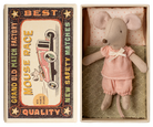 A Maileg favourite, this Little Sister Mouse comes tucked inside her very own matchbox bed. Dressed in cosy pyjamas, she rests on a soft blanket with a little pillow, ready for sweet dreams. When she wakes, she is all set for hours of play before curling back up in her box at bedtime.
