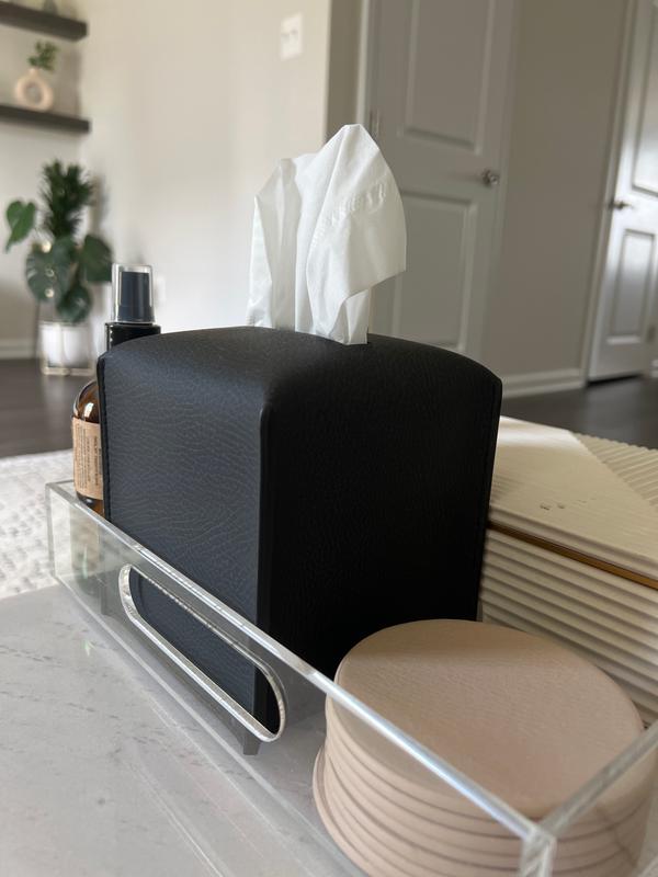 Love these tissue box covers! Looks great in my living room and office. Fits well over the tissue box, easy to dust and clean. Pictured in Untanned (left) and Millet (right).