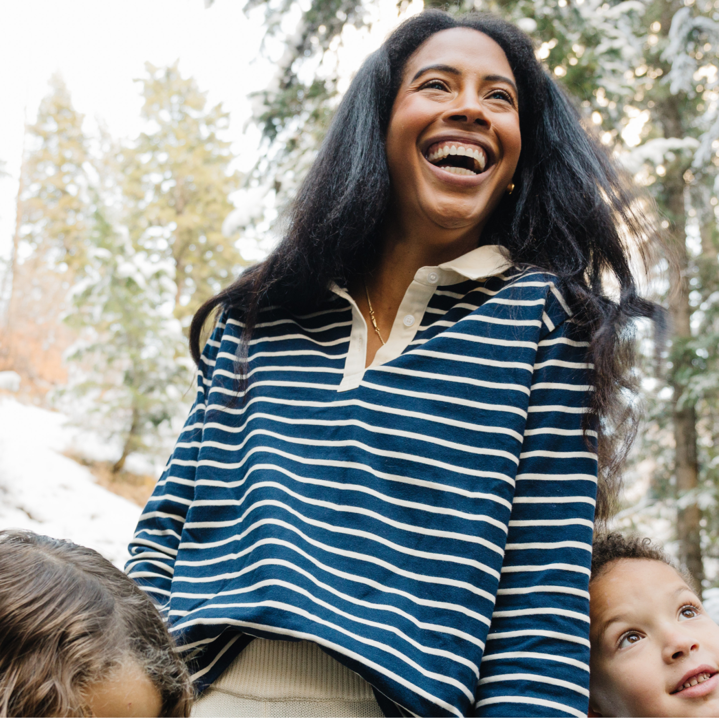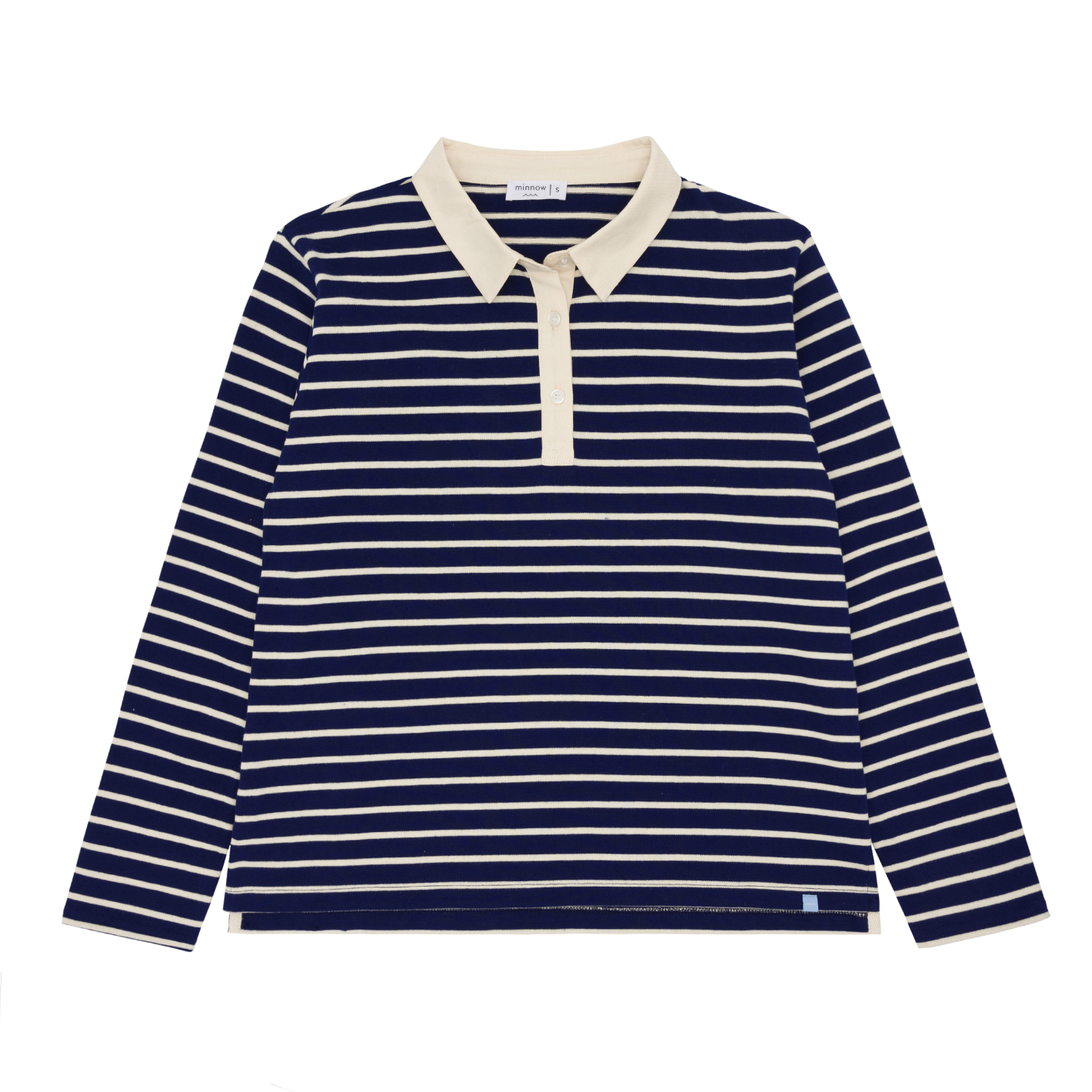 casual meets cute with our new rugby shirt. an iconic style with a retro feel, it's soft and lightweight. we love to wear it as an everyday tee with your favorite pair of jeans or thrown over swim. for a more oversized look, we recommend sizing up.