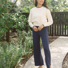 this premium knit pant takes elevated loungewear to a whole new level. with a casual, straight leg fit, it's as cozy as it is cute. the cotton-cashmere luxury knit is ultra-soft, perfect for sunset at the beach or relaxing at home. you'll want a pair for every day of the week! make it a set by pairing it with our classic breton stripe knit sweater or new quarter-zip pullover.